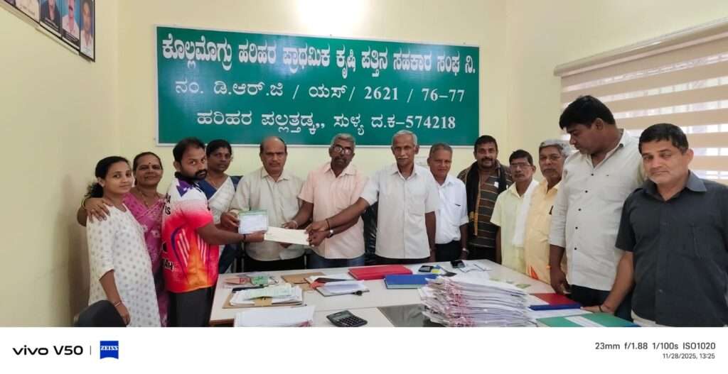 ಕೊಲ್ಲಮೊಗ್ರು ಹರಿಹರ ಪ್ರಾ.ಕೃ.ಪ.ಸ.ಸಂಘದ ಸದಸ್ಯತನ ಹೊಂದಿದ್ದು ಇತ್ತೀಚೆಗೆ ಮರಣ ಹೊಂದಿದ ಕಮಲ ದೇವರುಳಿಯ ಮನೆಯವರಿಗೆ ಮರಣ ಸಾಂತ್ವನ ನಿಧಿಯನ್ನು ನ.28 ವಿತರಿಸಲಾಯಿತು.