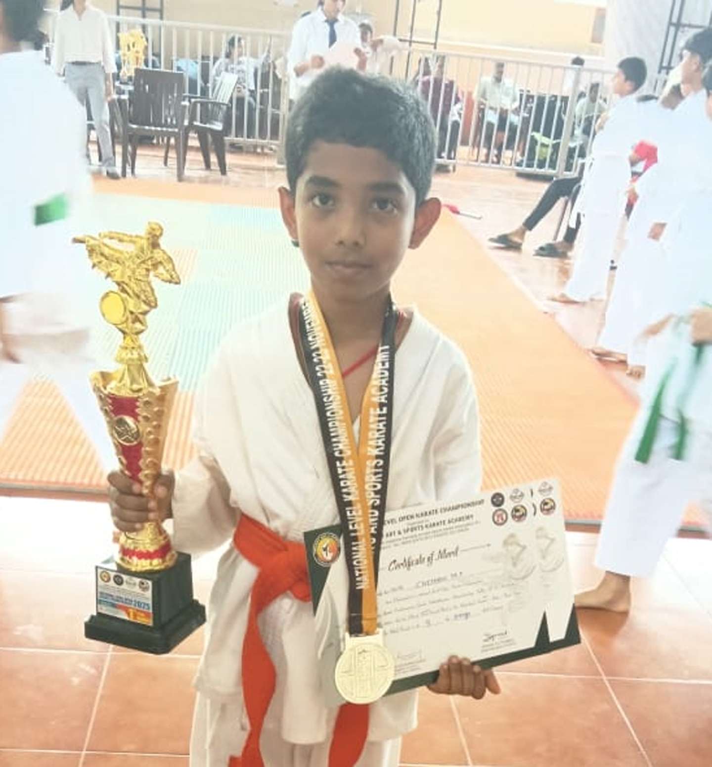 ನ.22 ಮತ್ತು ನ.23 ರಂದು ಸುಳ್ಯದ ಅಮರಶ್ರೀಭಾಗ್ ನ ಕುರುಂಜಿ ಜಾನಕಿ ವೆಂಕಟ್ರಮಣ ಗೌಡ ಸಭಾಂಗಣದಲ್ಲಿ ನಡೆದ ರಾಷ್ಟ್ರೀಯ ಕರಾಟೆ ಸ್ಪರ್ಧೆಯಲ್ಲಿ ಮರ್ಕಂಜ ಗ್ರಾಮದ ಮನೋಹರ ಪುರ ಮತ್ತು ಜಯಂತಿ ದಂಪತಿಗಳ ಪುತ್ರ ಚಿಂತನ್ ಪುರ ಪ್ರಥಮ ಸ್ಥಾನ ಪಡೆದಿರುತ್ತಾರೆ. ಈತ ಗುತ್ತಿಗಾರಿನ ಬ್ಲೆಸ್ಡ್ ಕುರಿಯಾಕೋಸ್ ಶಾಲೆಯ ವಿದ್ಯಾರ್ಥಿ.