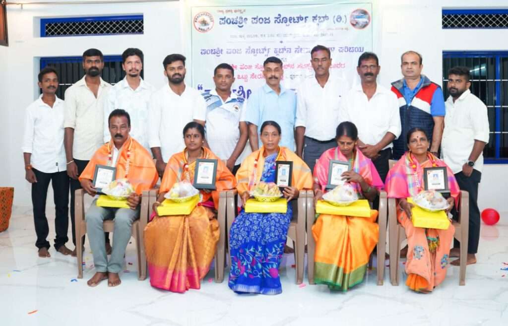 ಪಂಜ ಗ್ರಾಮ ಪಂಚಾಯತ್ ನ ತ್ಯಾಜ್ಯ ವಿಲೇವಾರಿ ಘಟಕದ ಸ್ವಚ್ಛತಾ ಸಿಬ್ಬಂದಿಯಾಗಿ ಸೇವ ಸಲ್ಲಿಸುತ್ತಿರುವ ಶ್ರೀಮತಿ ಕೋಮಲಾಂಗಿ, ಶ್ರೀಮತಿ ದೇವಕಿ, ಶ್ರೀಮತಿ ವಿಶಾಲಾಕ್ಷಿ ಎಂ, ಶ್ರೀಮತಿ ಕಮಲ ಹಾಗೂ ಪಂಜ ಗ್ರಾಮ ಪಂಚಾಯತ್ ನ ಮುಕ್ತಿಧಾಮದಲ್ಲಿ ಶವ ಸಂಸ್ಕಾರ ಮಾಡುವ ಕಾರ್ಯ ಹಾಗೂ ಸ್ವಚ್ಛತಾ ಕಾರ್ಯ ಮಾಡುತ್ತಿರುವ ತಾರಾನಾಥ ಬರೆಮೇಲು ರವರನ್ನು ಸನ್ಮಾನಿಸಲಾಯಿತು . ಪಂಚಶ್ರೀ ಜೀವರಕ್ಷಕ ಅಂಬ್ಯುಲೆನ್ಸ್ ನ ಚಾಲಕರಾಗಿ ಅನೇಕ ಜೀವಗಳನ್ನು ಉಳಿಸಿದ ಪದ್ಮಕುಮಾರ್ ನಾಯರ್ ಕೆರೆ, ದಯಾನಂದ ಬೇರ್ಯ, ಶಶಿ ದಾಸ್ ನಾಗತೀರ್ಥ, ಉದಯಶಂಕರ ಪಲ್ಲೋಡಿ ರವರನ್ನು ಕ್ಲಬ್ ನ ಗೌರವ ಸಲಹೆಗಾರರಾದ ಶಿವರಾಮ್ ಏನೆಕಲ್ಲು, ಯೋಗೀಶ್ ಚಿದ್ಗಲ್, ದಿಲೀಪ್ ಕುಮಾರ್ ಬಾಬ್ಲುಬೆಟ್ಟು, ಉಮೇಶ್ ಪಂಜದಬೈಲು, ದಾಮೋದರ ನೇರಳ ರವರು ಸನ್ಮಾನಿಸಿದರು. ಕ್ಲಬ್ ನ ಹಿತೈಷಿಗಳಾದ ಸೋಮಶೇಖರ ನೇರಳ ಇವರು ಕ್ಲಬ್ ಸಾಧನೆ ಅತ್ಯುತ್ತಮ ಕಾರ್ಯಗಳ ಬಗ್ಗೆ ಅಭಿನಂದಿಸಿದರು. ಕ್ಲಬ್ ನ ಗೌರವಾಧ್ಯಕ್ಷ ಪವನ ಪಲ್ಲತ್ತಡ್ಕ ರವರು ಪಂಚಶ್ರೀ ಪರಿವಾರ ಸಂಗಮ ಕಾರ್ಯಕ್ರಮದ ಬಗ್ಗೆ ಮೆಚ್ಚುಗೆಯನ್ನು ವ್ಯಕ್ತಪಡಿಸಿದರು , ಕ್ಲಬ್ ನ ಎಲ್ಲಾ ಸದಸ್ಯರ ಮನೆಯವರು ಒಟ್ಟು ಸೇರುವಿಕೆ ಇದೇ ಮೊದಲ ಬಾರಿ ಎಂದು ತಿಳಿಸಿದರು ಹಾಗೂ ತಮಗೆ ದೊರಕಿದ ಅವಕಾಶಗಳು ಪ್ರಶಂಸನೆ ಎಲ್ಲವೂ ಪಂಚಶ್ರೀ ಪಂಜ ಸ್ಪೋರ್ಟ್ಸ್ ಕ್ಲಬ್ ನಿಂದ ಎಂದು ತಮ್ಮ ಮಾತನ್ನು ಹಂಚಿಕೊಂಡರು.