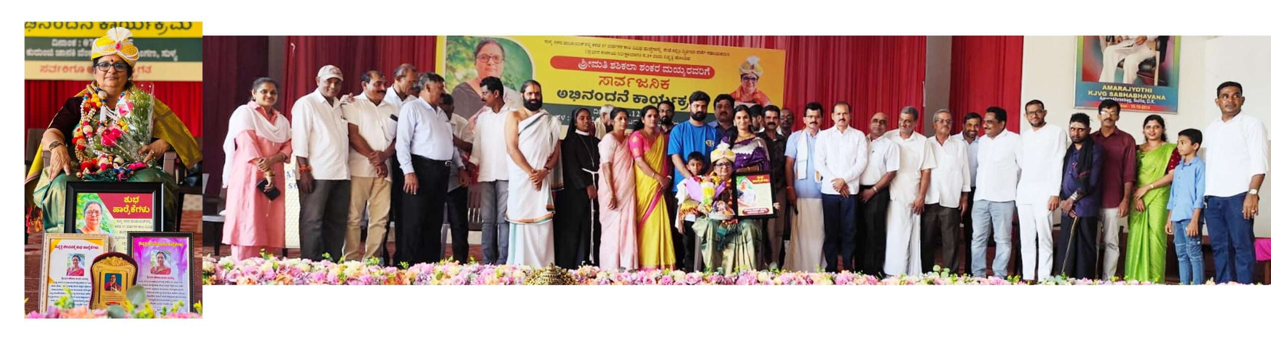ಸುಳ್ಯ ನಗರ ಪಂಚಾಯತ್ನಲ್ಲಿ ೩೭ ವರ್ಷಗಳ ಕಾಲ ವಿವಿಧ ಹುದ್ದೆಗಳಲ್ಲಿ ಸೇವೆ ಸಲ್ಲಿಸಿ ದ್ವಿತೀಯ ದರ್ಜೆ ಸಹಾಯಕರಾಗಿ ನಿವೃತ್ತರಾದ ಶಶಿಕಲಾ ಶಂಕರ ಮಯ್ಯ ಅವರಿಗೆ ಸಾರ್ವಜನಿಕ ಅಭಿನಂದನೆ ಹಾಗೂ ಸನ್ಮಾನ ಕಾರ್ಯಕ್ರಮ ಕುರುಂಜಿ ಜಾನಕಿ ವೆಂಕಟರಮಣ ಗೌಡ ಸಭಾಂಗಣದಲ್ಲಿ ಡಿ.೭ರಂದು ನಡೆಯಿತು.