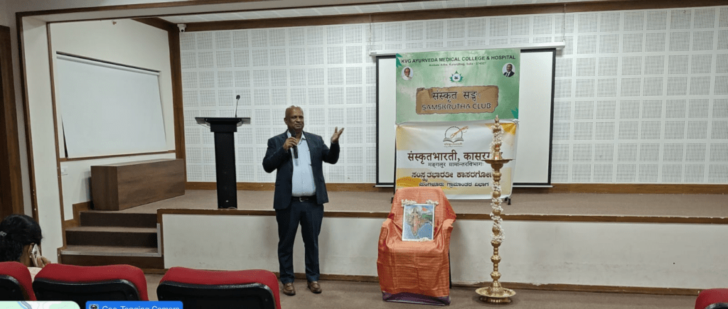ಕೆ ವಿ ಜಿ ಆಯುರ್ವೇದ ಮೆಡಿಕಲ್ ಕಾಲೇಜು ಮತ್ತು ಆಸ್ಪತ್ರೆ ಸುಳ್ಯದಲ್ಲಿ 10 ದಿನದ ಸಂಸ್ಕೃತ ಸಂಭಾಷಣಾ ಶಿಬಿರದ ಉದ್ಘಾಟನೆಯು ಡಿ. 08 ರಂದು ಕಾಲೇಜಿನ ಸುಶ್ರುತ ಸಭಾಂಗಣದಲ್ಲಿ ನಡೆಯಿತು.
