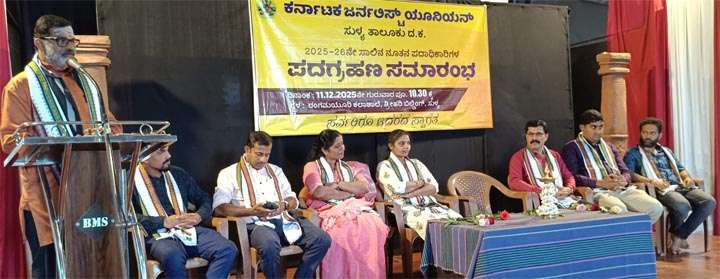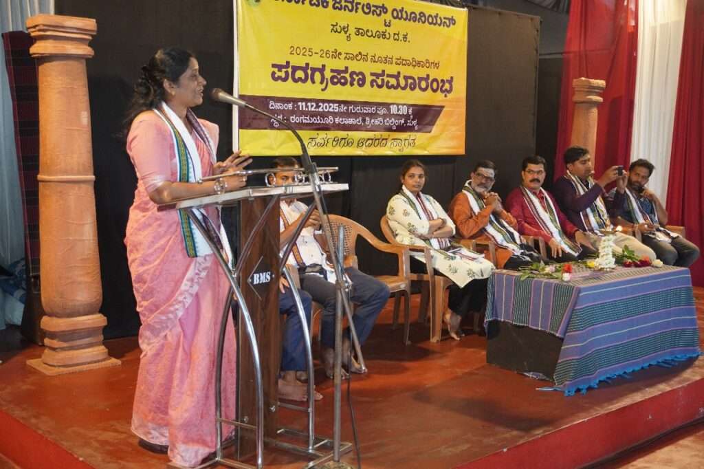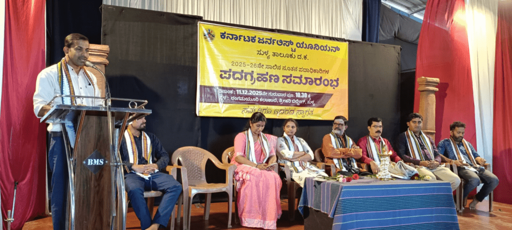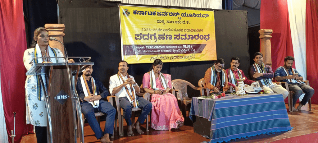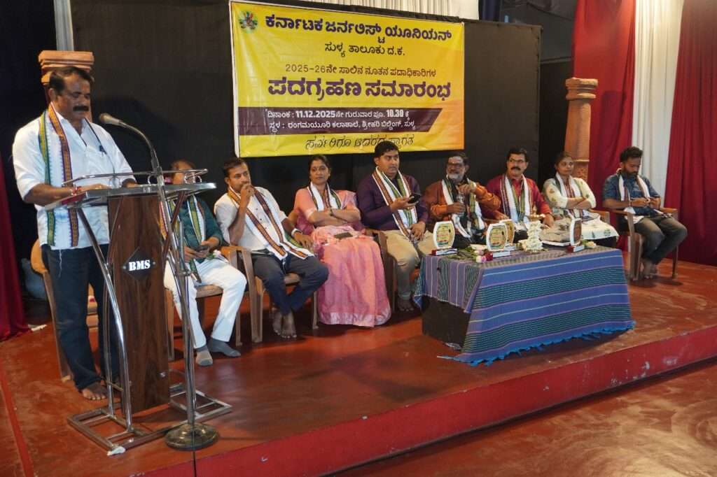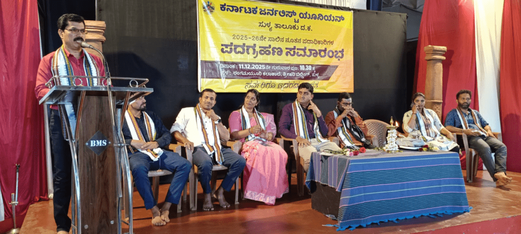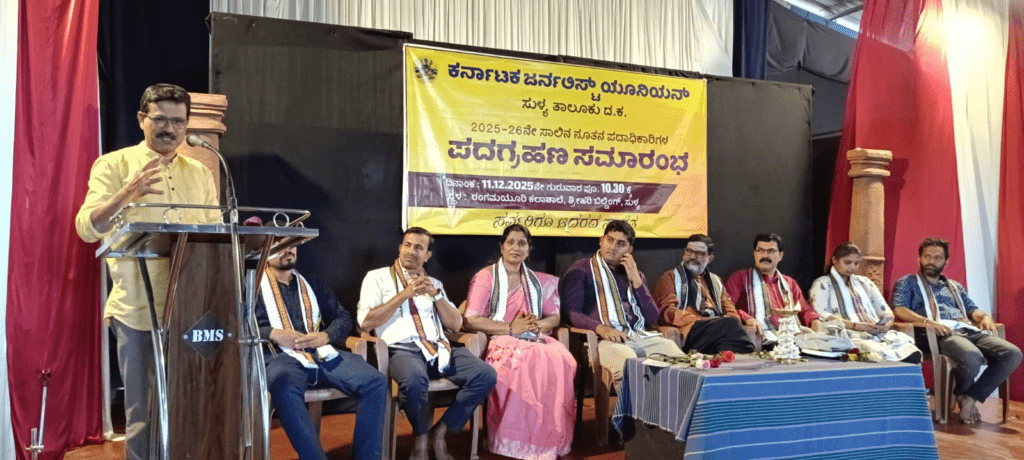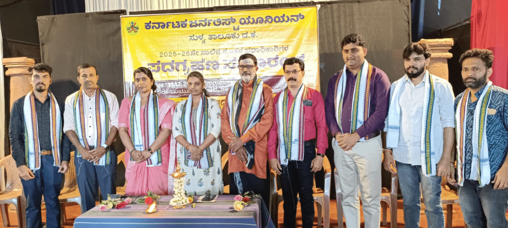 ಕರ್ನಾಟಕ ಜರ್ನಲಿಸ್ಟ್ ಯೂನಿಯನ್ ನ ನೂತನ ಅಧ್ಯಕ್ಷ ಯಶ್ವಿತ್ ಕಾಳಮ್ಮನೆ, ಪ್ರಧಾನ ಕಾರ್ಯದರ್ಶಿ ಶ್ರೀಜಿತ್ ಸಂಪಾಜೆ, ಕೋಶಾಧಿಕಾರಿ ಅನಿಲ್ ಕಳಂಜ ತಂಡದ ಪದಗ್ರಹಣ ಸಮಾರಂಭ ಡಿ.11ರಂದು ಸುಳ್ಯದ ರಂಗ ಮಯೂರಿ ಕಲಾ ಶಾಲೆಯಲ್ಲಿ ನಡೆಯಿತು.