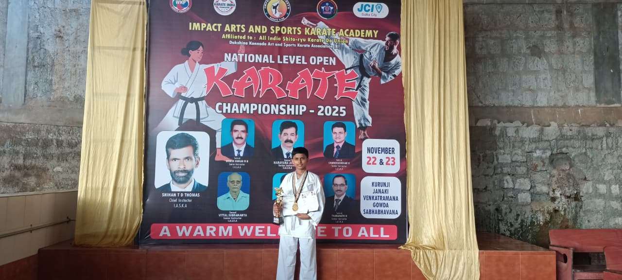 ರಾಷ್ಟ್ರೀಯ ಕರಾಟೆ : ಹಿಮಾಂಶು ಗೆ ಚಿನ್ನದ ಪದಕ December 15, 2025 0 FacebookTwitterWhatsApp ಸುಳ್ಯದಲ್ಲಿ ನಡೆದ ರಾಷ್ಟ್ರೀಯ ಮಟ್ಟದ ಕರಾಟೆ ಸ್ಪರ್ಧೆಯಲ್ಲಿ ಬೆಳ್ಳಾರೆ ಜ್ಞಾನಗಂಗಾ ಸ್ಕೂಲ್ ನ 8ನೇ ತರಗತಿ ವಿದ್ಯಾರ್ಥಿ ಹಿಮಾಂಶು ಎ.ಆರ್. ಬೂದಿಪಳ್ಳ ಚಿನ್ನದ ಪದಕ ಪಡೆದಿದ್ದಾನೆ. ಈತ ಏನೆಕಲ್ಲು ಬೂದಿಪಳ್ಳದ ಅಶ್ವತ್ ಮತ್ತು ರೂಪ ದಂಪತಿಯ ಪುತ್ರ.
