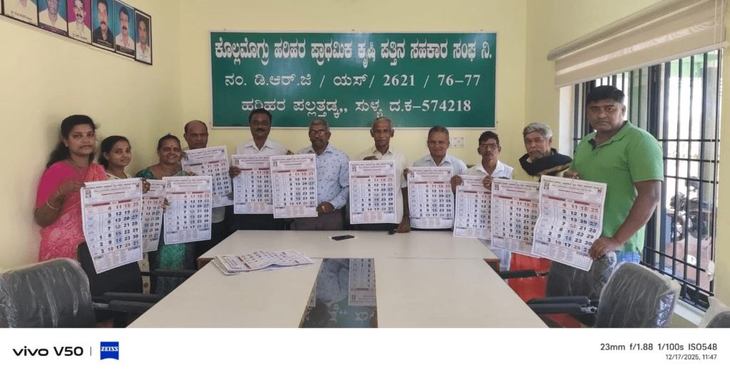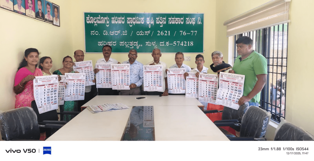 ಕೊಲ್ಲಮೊಗ್ರು-ಹರಿಹರ ಪ್ರಾಥಮಿಕ ಕೃಷಿ ಪತ್ತಿನ ಸಹಕಾರಿ ಸಂಘದ 2026ನೇ ಸಾಲಿನ ಕ್ಯಾಲೆಂಡರ್ ಬಿಡುಗಡೆ ಡಿ.17ರಂದು ಸಂಘದ ಕಛೇರಿಯಲ್ಲಿ ನಡೆಯಿತು.