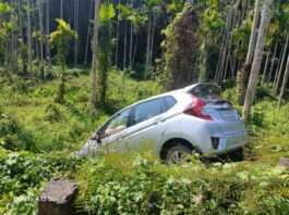ಅರಂತೋಡು: ಚಾಲಕನ ನಿಯಂತ್ರಣ ತಪ್ಪಿ ರಸ್ತೆ ಬದಿಯ ಚರಂಡಿಗೆ ಇಳಿದ ಕಾರು